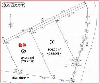 備考 | *土地は他に浄化槽処理水配管用地約24.96㎡付き.水道引き込み買主負担.*住宅建築は津田と隣接大字に10年以上借家住まいの方等に限定です.*③区画 306㎡ 560万円. |