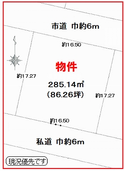 道路 北側:市道 巾約6mn南側:私道 巾約6m